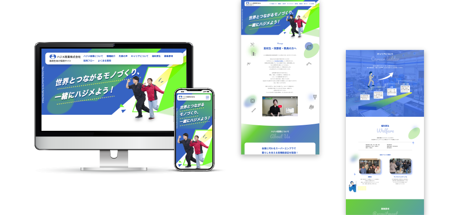 今回制作したハジメ産業株式会社様の高卒採用LPでは、長年培ってきた技術力や信頼感を土台に、